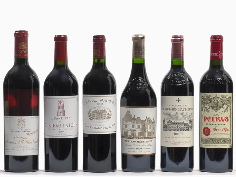 9 bts : CAISSE DUCLOT COLLECTION : 1 bt : PETRUS 2009 Pomerol+ 1 bt : CH CHEVAL BLANC 2009 1er GC (A) Saint Emilion + 1 bt : CH MARGAUX 2009 1er GC Margaux + 1 bt : CH HAUT BRION 2009 1er GC Pessac Leognan + 1 bt : CH MOUTON ROTHSCHILD 2009 1er GC Pauillac + 1 bt : CH LAFITE ROTHSCHILD 2009 1er GC Pauillac + 1 bt : CH LA MISSION HAUT BRION 2009 CC Pessac Léognan + 1 bt : CH LATOUR 2009 1er GC Pauillac + 1 bt : CH D'YQUEM 2009 1er Cru Supérieur Sauternes